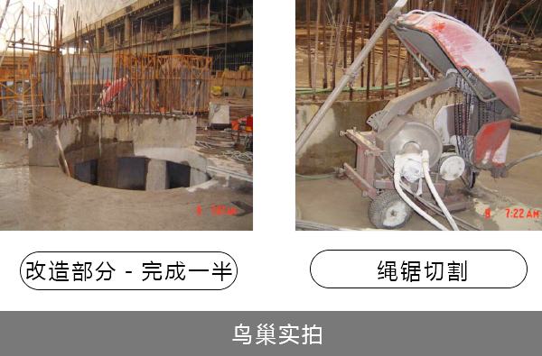 由于結構中含有的鋼筋太多 強度太高,傳統的水鉆排孔方式已經不能夠拆除,液壓剪也無法使用,所以使用進口大功率液壓墻鋸切割。